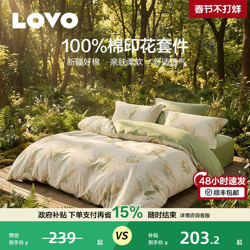 罗莱家纺LOVO乐蜗床单床上四件套床品100棉全棉纯棉被套学生宿舍