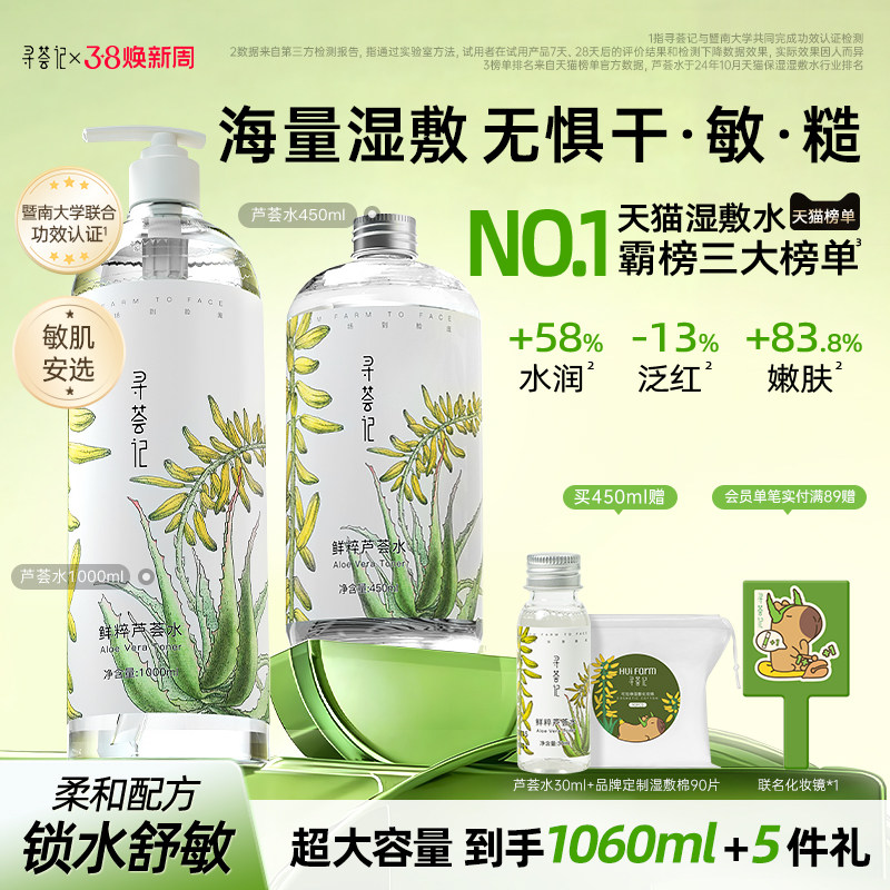 寻荟记芦荟水补水湿敷爽肤水女保湿水喷雾舒缓褪红屏障化妆水护肤