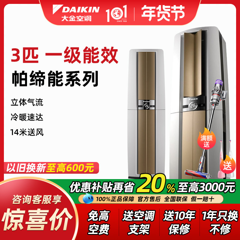 Daikin/大金一级帕缔能FVXF172变频冷暖3匹p立式柜机家用大金空调