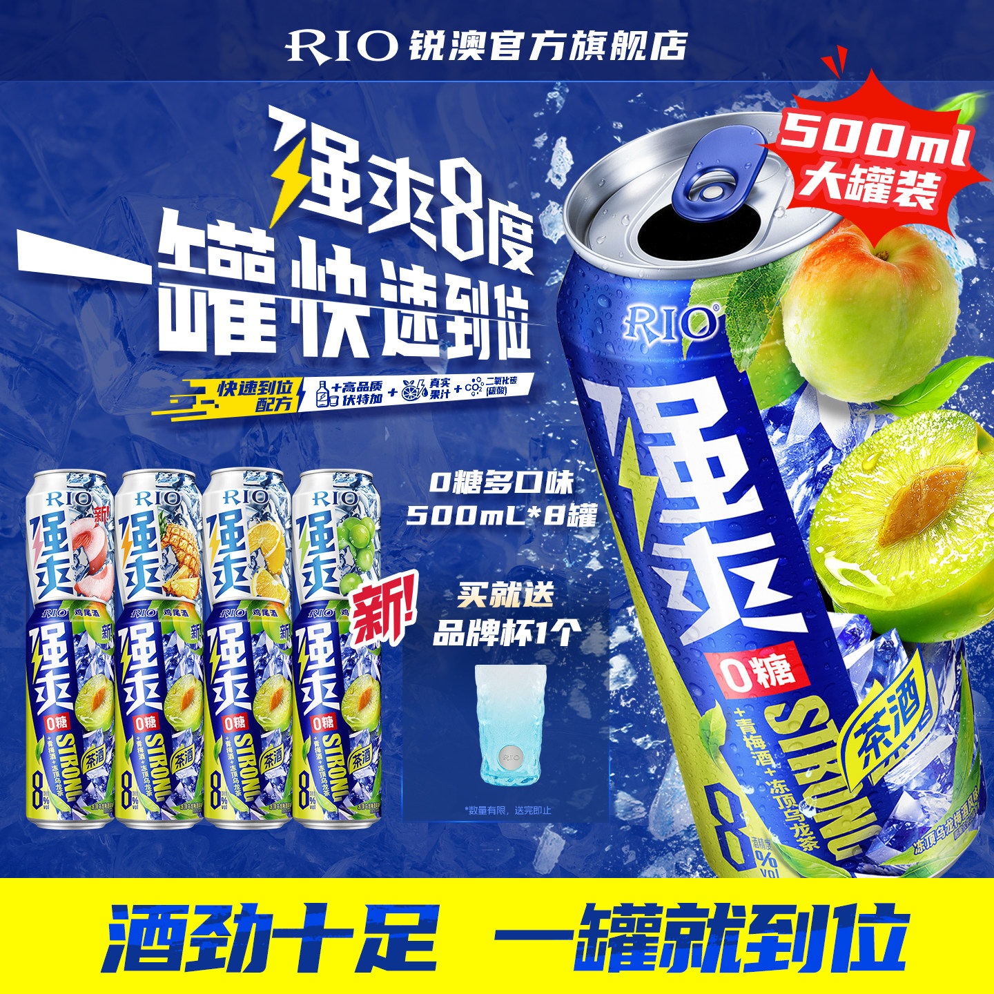大罐装RIO锐澳预调鸡尾酒8度强爽500ml*8罐冻顶乌龙果酒梅子茶酒