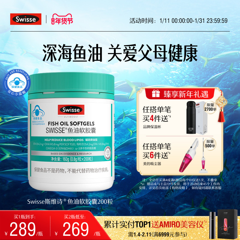 Swisse斯维诗鱼油深海鱼软胶囊omega3成人中老年官方旗舰店正品
