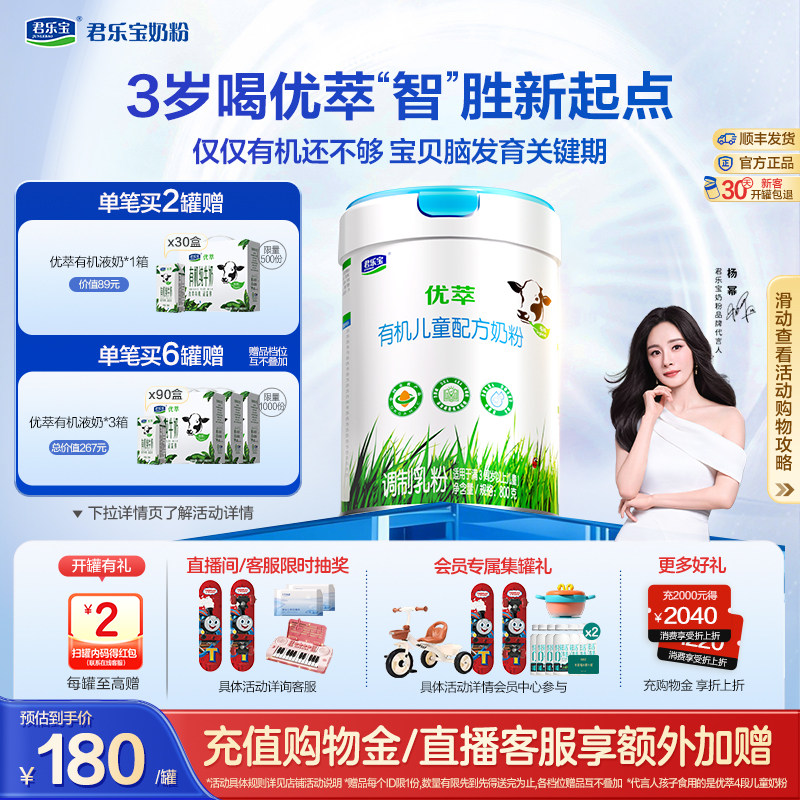 【杨幂推荐】君乐宝优萃有机4段儿童配方牛奶粉3周岁以上800g*1罐