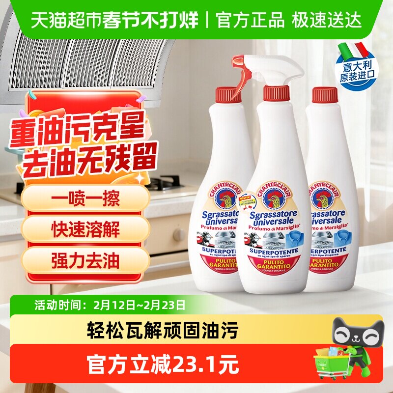 进口大公鸡油污净抽油烟机强力清洁剂小白鞋去油污除垢600ml*3瓶