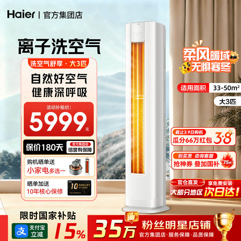 【麦浪】海尔洗空气空调家用2匹3匹一级能效变频客厅立式柜机72E3