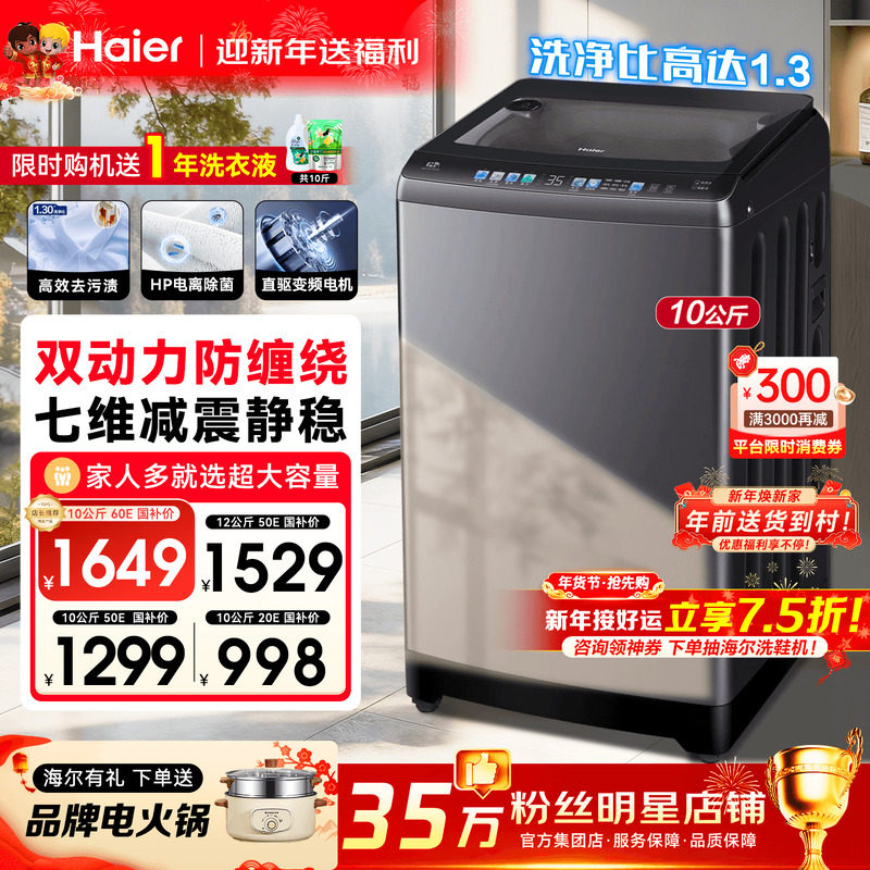 【手搓洗防缠绕】海尔洗衣机60E家用10kg全自动直驱波轮50E旗舰店