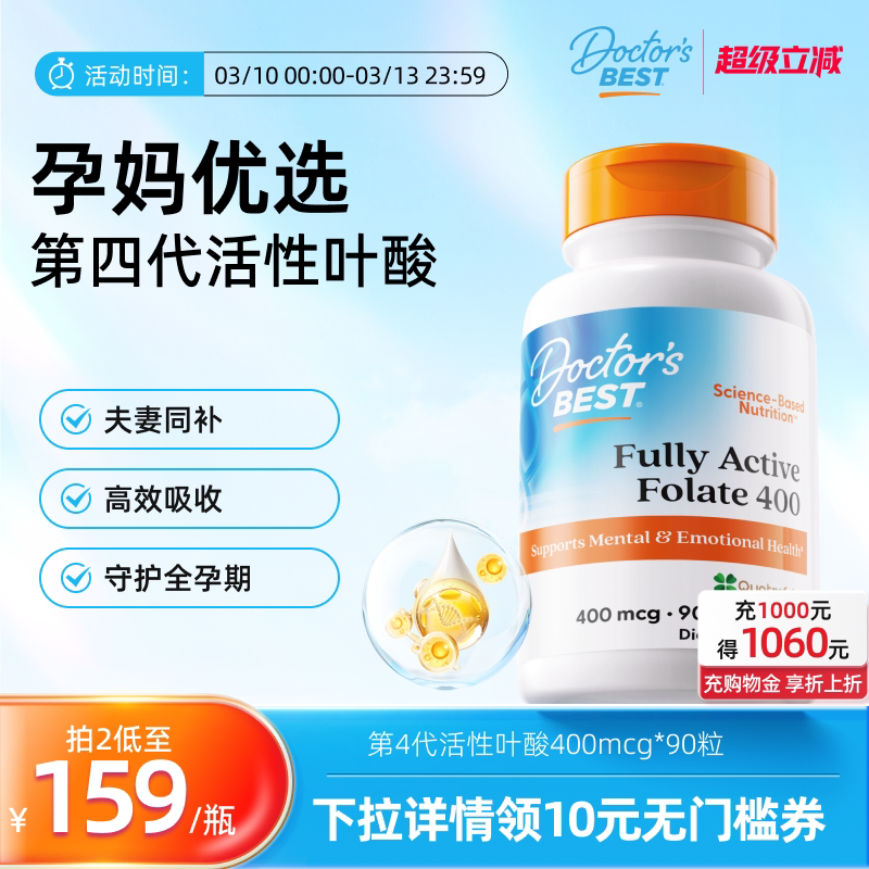 Doctors Best多特倍斯金达威活性叶酸多维营养信心甲基孕前vb