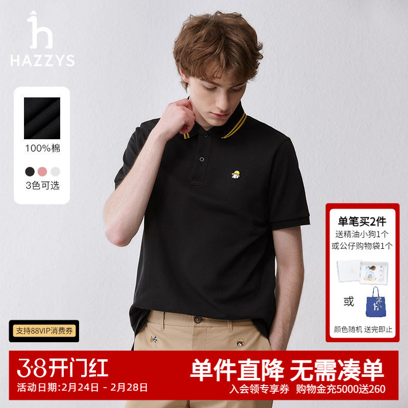 Hazzys哈吉斯奥莱夏季男士短袖T恤衫纯棉韩版宽松polo潮流上衣