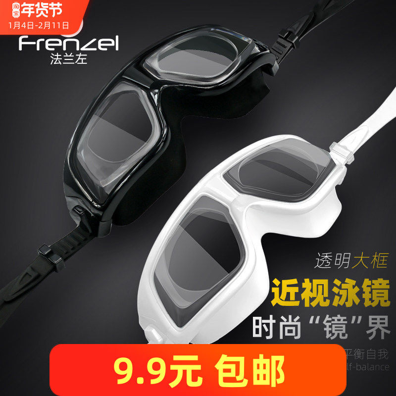 FRENZEL法兰左近视泳镜高清大框电镀防水防雾男女成人海滩游泳镜