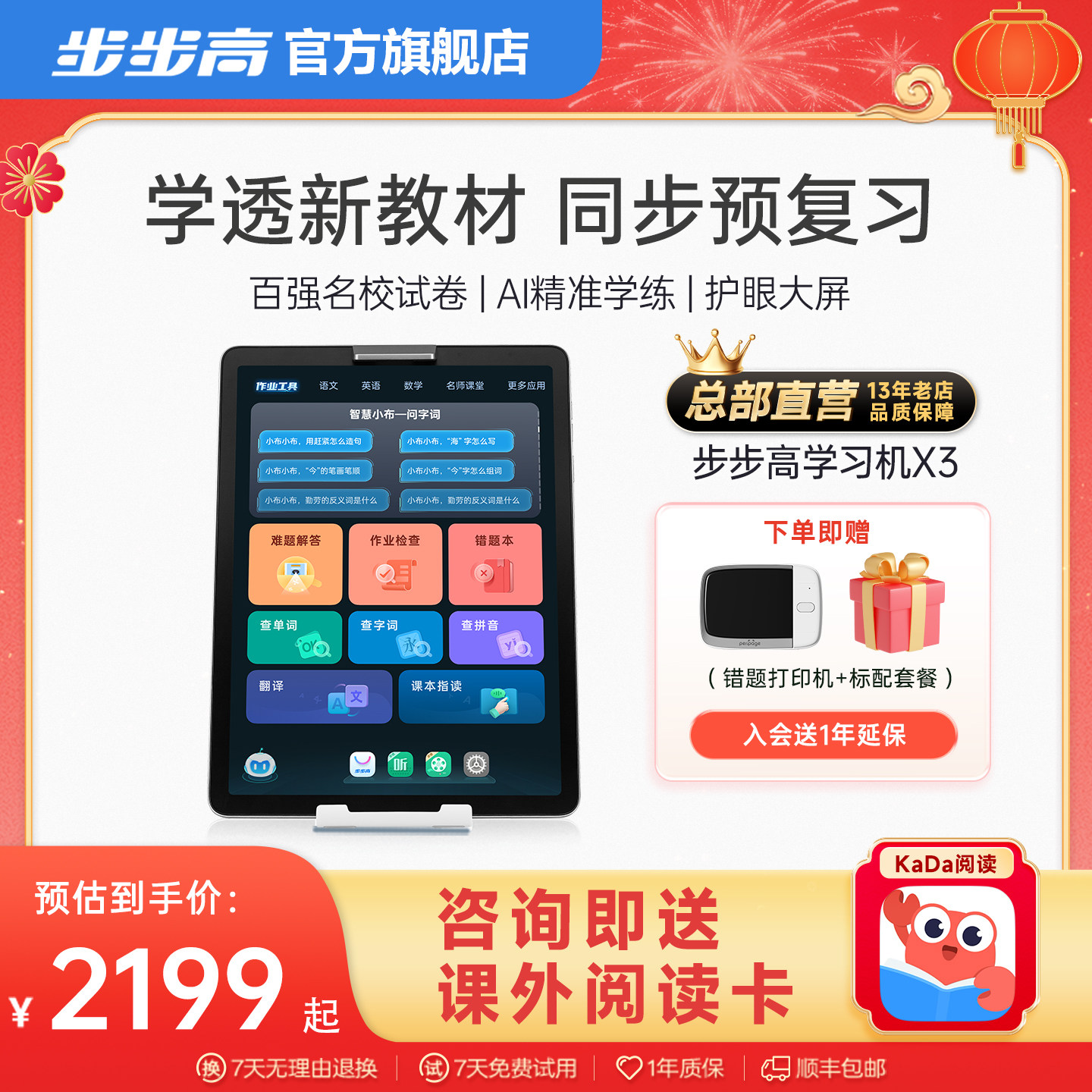 【官方旗舰】步步高学习机X3学练家教机ai智能批改原题一年级到六年级英语专用小学