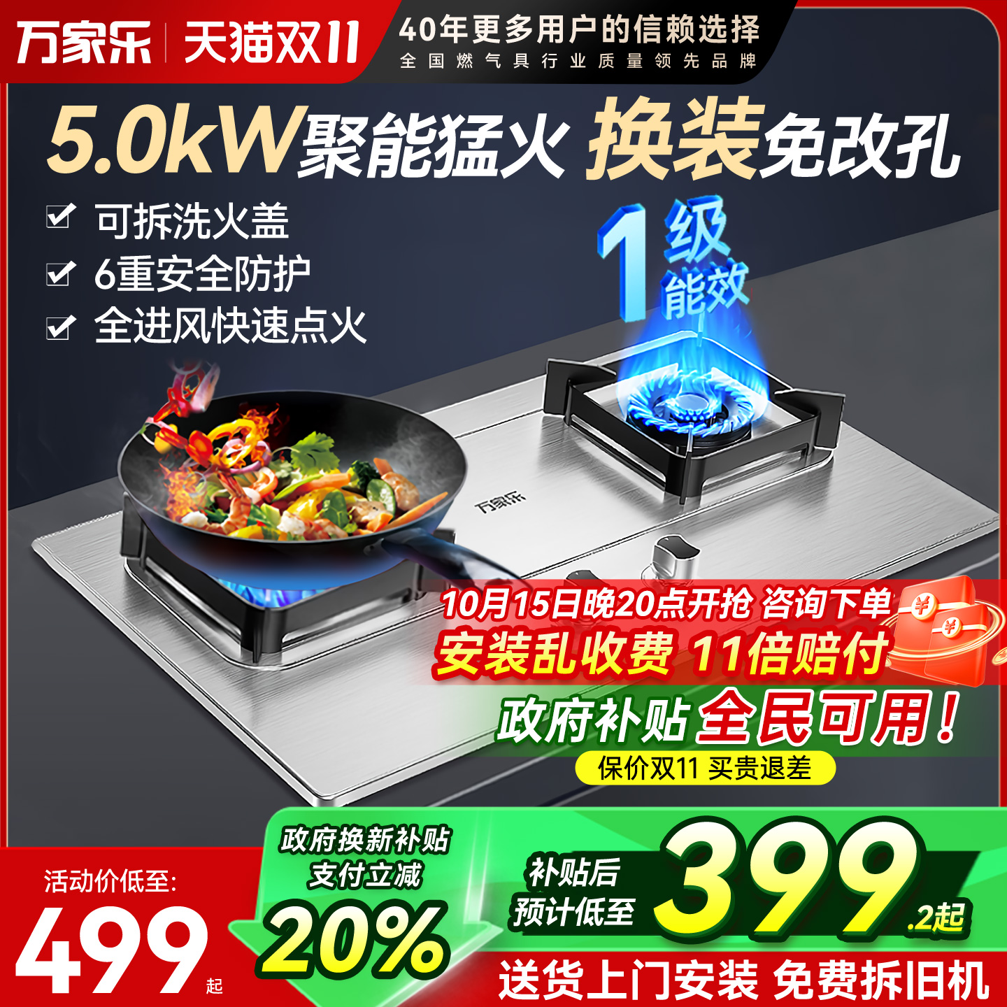 万家乐AY5G燃气灶双灶不锈钢灶台天然液化气灶嵌入式煤气家用AY4G