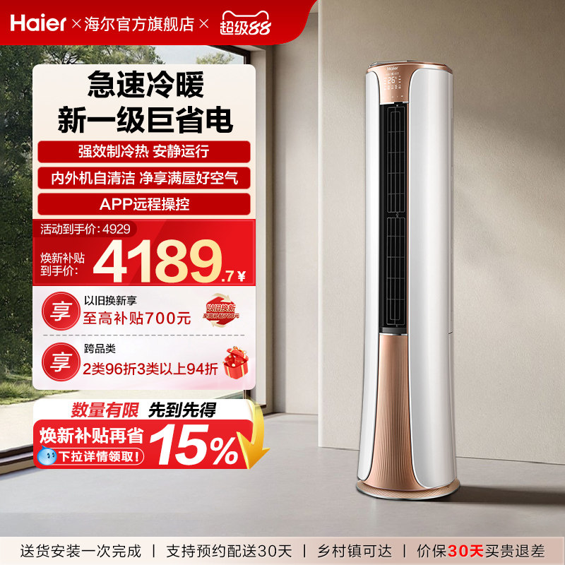 海尔静悦官方新一级能效2匹变频冷暖客厅家用立式柜机空调50kca
