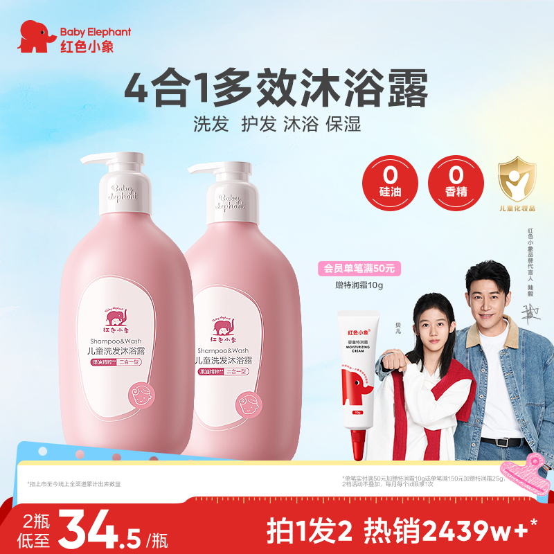 红色小象儿童洗发沐浴二合一3岁以上宝宝沐浴乳洗头温和清洁正品