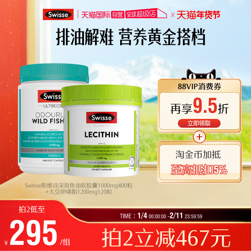 【自营】Swisse斯维诗深海鱼油胶囊高浓度+大豆卵磷脂软胶囊120粒