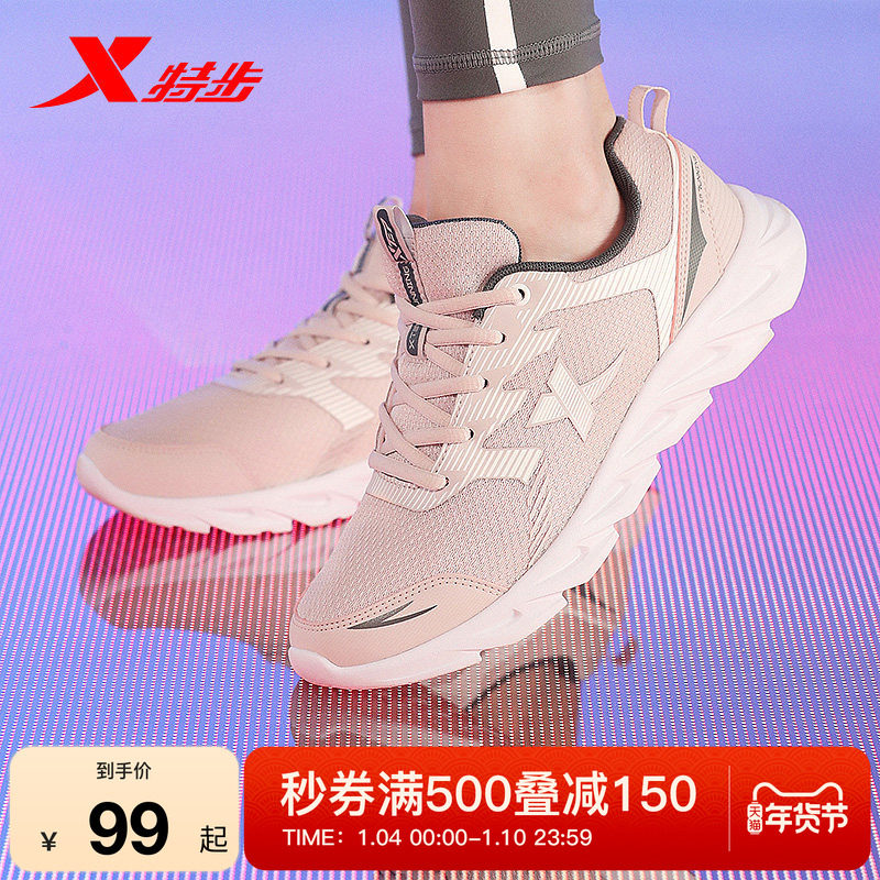 • 泡美丽»»特步运动鞋女鞋冬季新款网面轻便皮面防泼水软底妈妈减震跑步鞋男