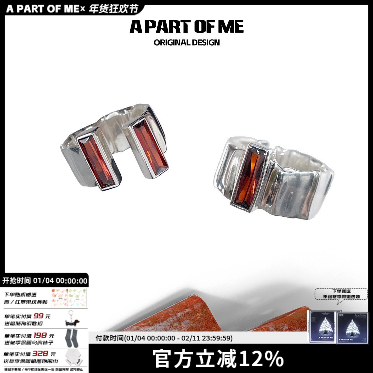 • 泡美丽»»危险同谋/原创925纯银红色锆石开口戒指小众暗黑男女情侣对戒