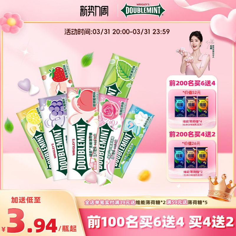 绿箭无糖薄荷糖口气清新提神糖果约35粒装零食接吻糖糖果清新口气
