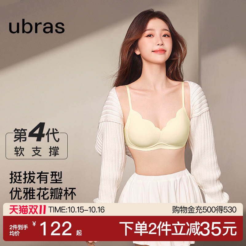 虞书欣同款ubras小花瓣内衣薄款小胸聚拢无痕细肩带软支撑文胸罩