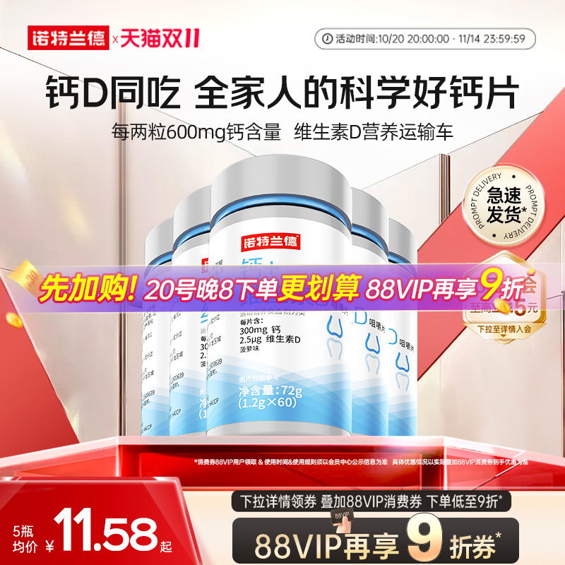 诺特兰德钙片维生素d咀嚼片青少年碳酸钙补男女性中老年非液体钙