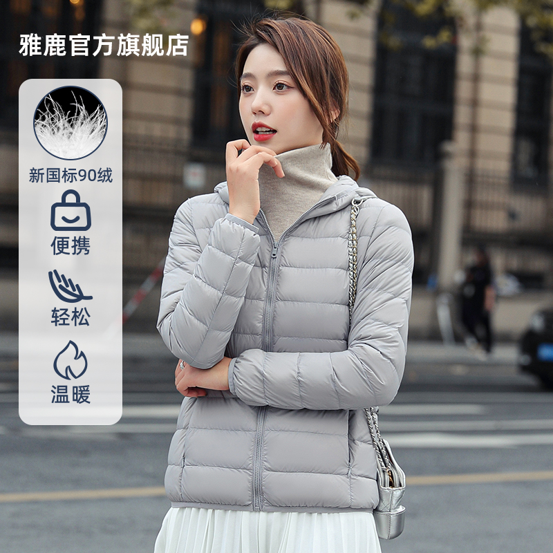 雅鹿官方旗舰店轻薄羽绒服女短款2025秋冬连帽保暖女装小个子外套