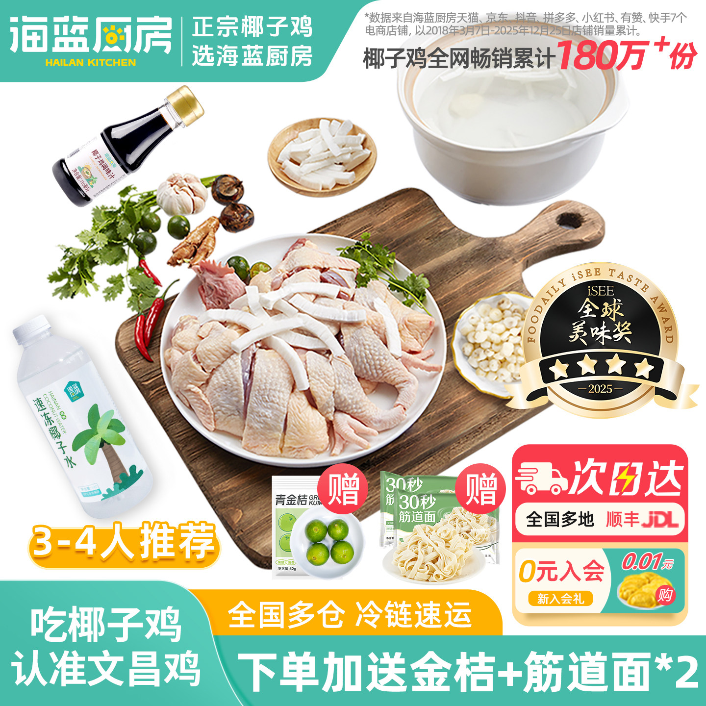 海蓝厨房海南椰子鸡全套餐火锅食材新鲜正宗文昌鸡母鸡散养土鸡肉