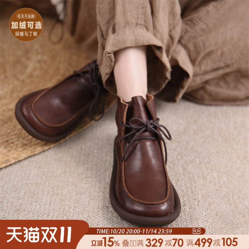 • 泡美丽»»Artmu阿木原创英伦风厚底马丁靴女2025年新款真皮加绒短靴子平底