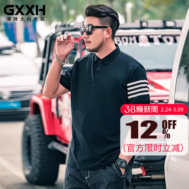 GxxH潮牌男装加肥加大码短袖T恤胖子纯色宽松胖人翻领polo衫200斤