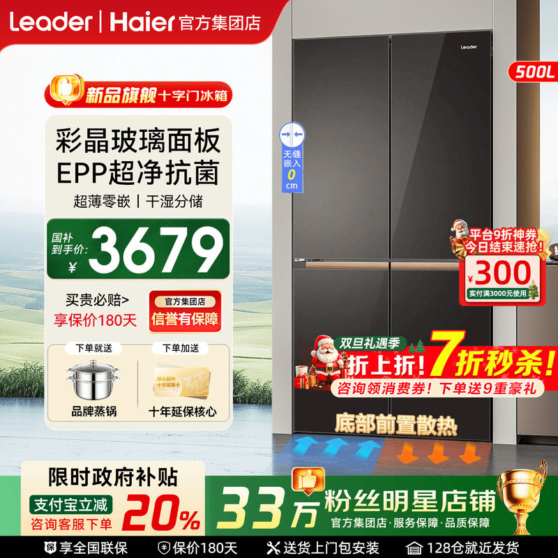 【补贴20%】海尔冰箱500L家用十字四门多门统帅529超薄零嵌旗舰店