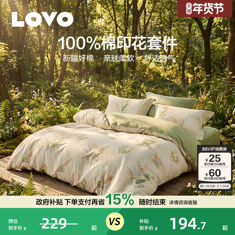 罗莱家纺LOVO乐蜗床单床上四件套床品100棉全棉纯棉被套学生宿舍