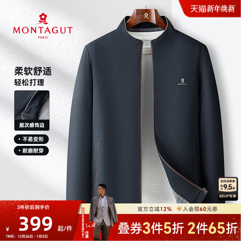 [弹力垂顺]梦特娇夹克男商务翻领防泼水青年休闲外套2025春季新款