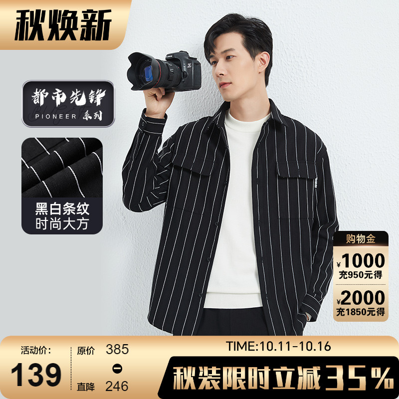 【衬衫外套】古鲨黑白条纹夹克男商务时尚直筒长袖衬衣2025秋装新