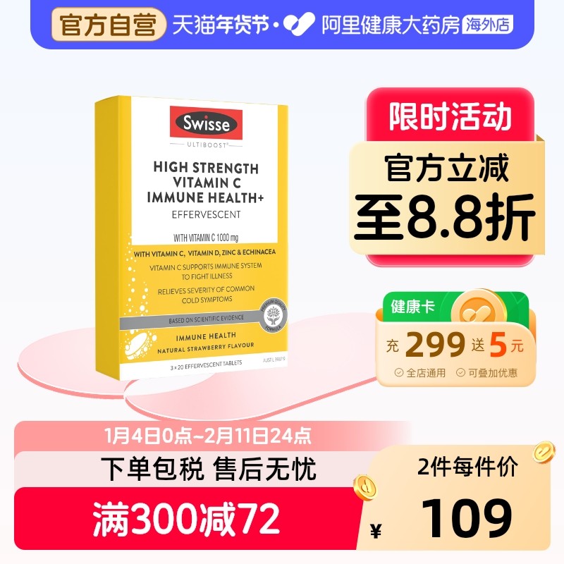 Swisse斯维诗高浓度维生素C锌紫锥菊维生素D泡腾片*60片澳洲进口