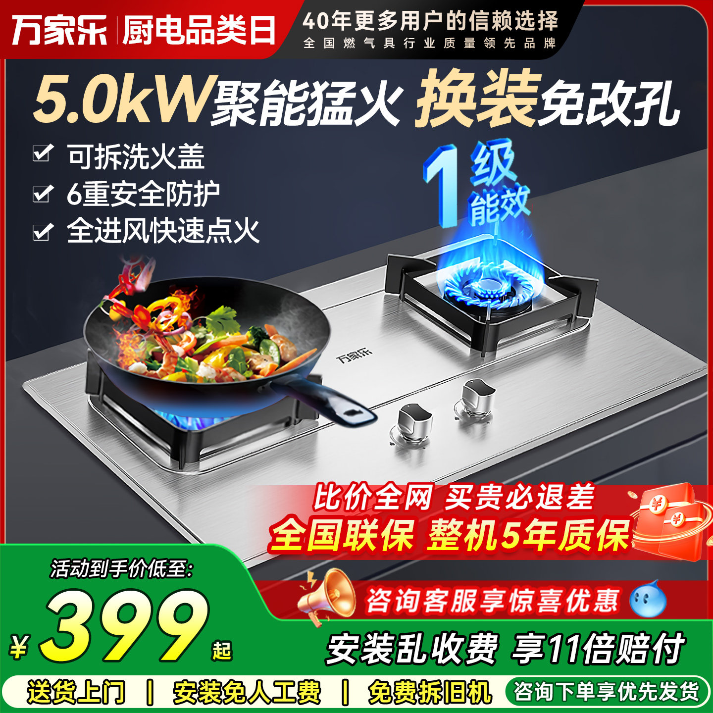 • 泡美丽»»万家乐AY5G燃气灶双灶不锈钢灶台天然液化气灶嵌入式煤气家用AY4G