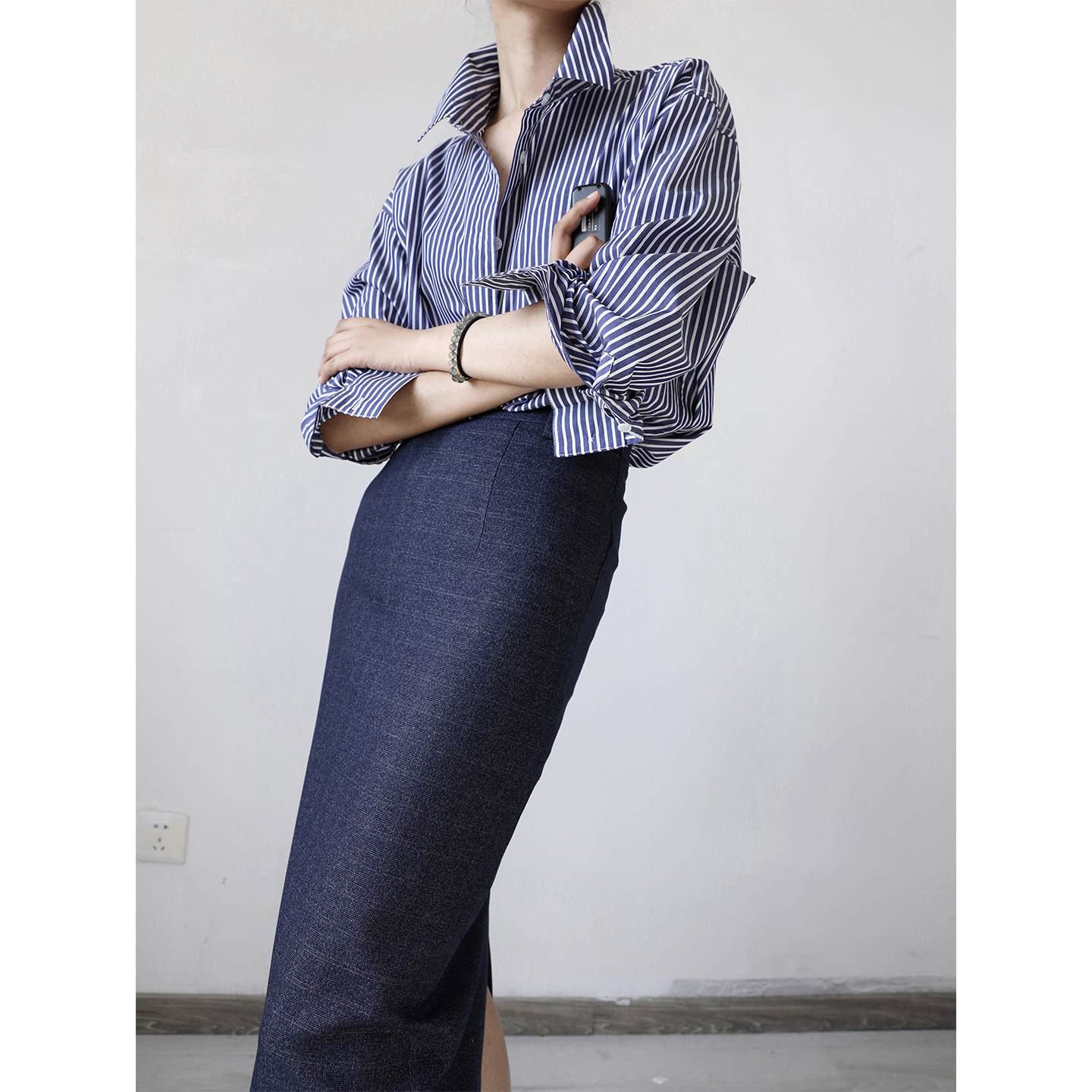 yans 设计感显瘦 通勤百搭宽松条纹衬衫 男友风基础款长袖衬衣