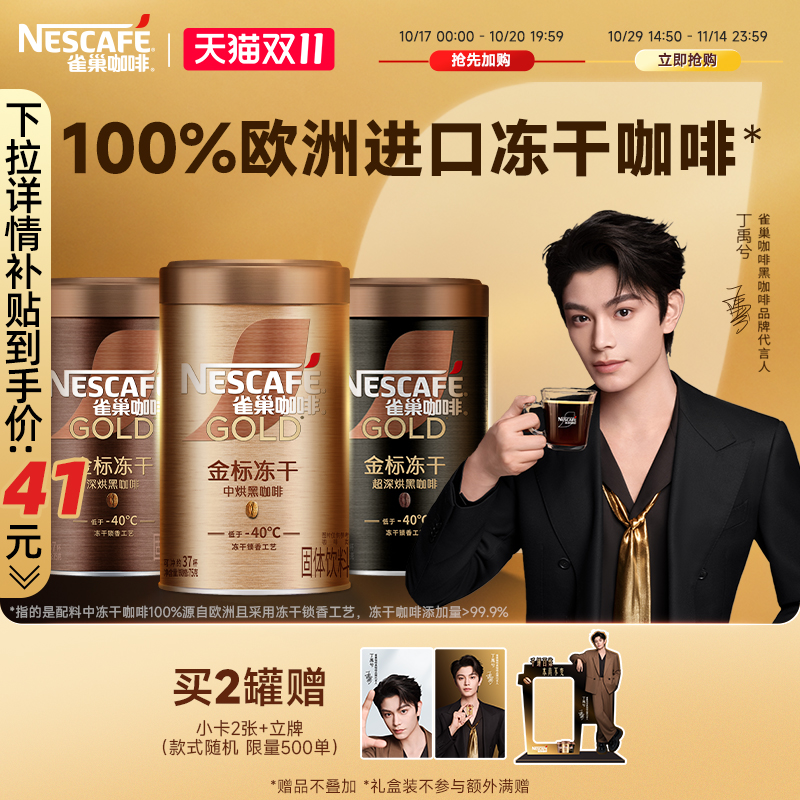 【代言人丁禹兮同款】雀巢咖啡金标美式速溶咖啡冻干黑咖旗舰店