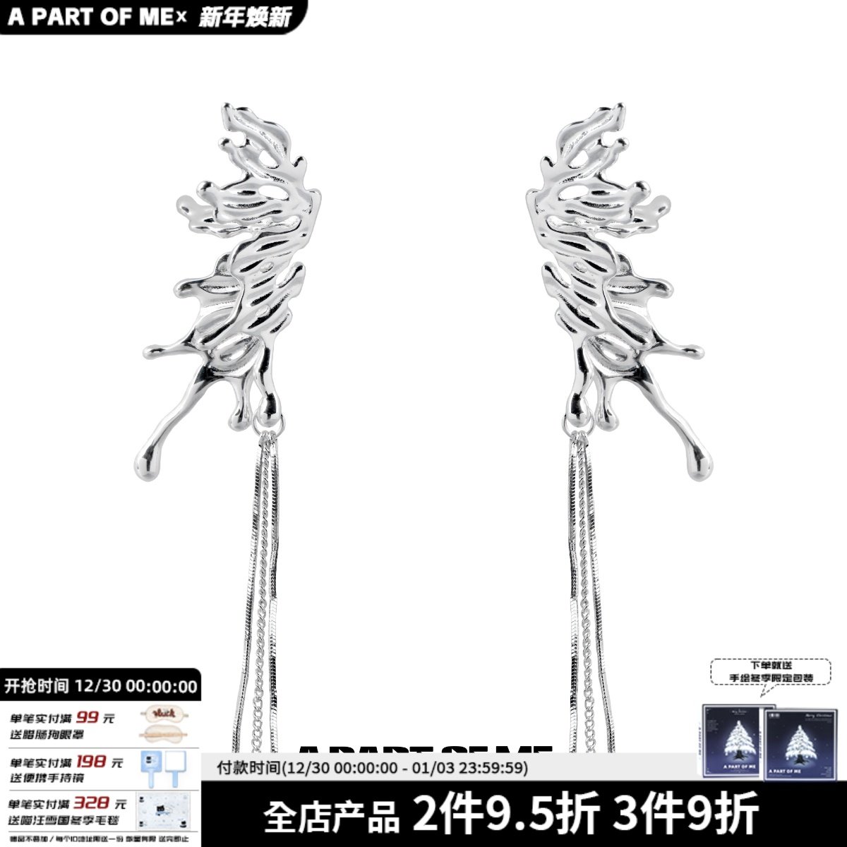 原创失灵蝴蝶耳环液体金属风耳夹流苏耳饰小众S925银针耳钉