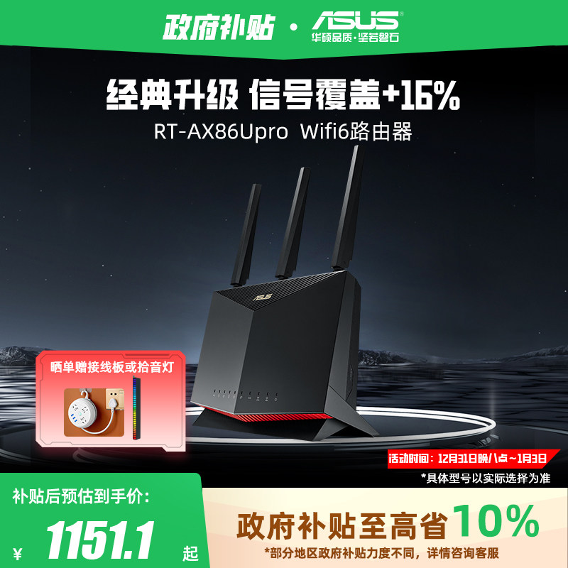 【政府补贴10%,全国可领】华硕RT-AX86U PRO巨齿鲨 AP功能 中央路