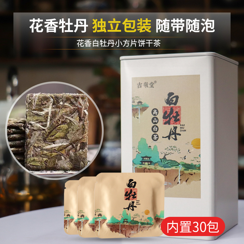 吉敬堂福鼎老白茶2020年花香白牡丹小方片饼干茶罐装散装茶叶30片