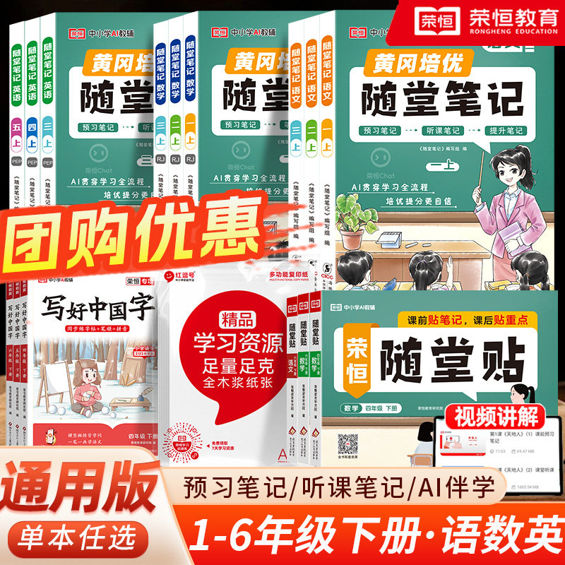【荣恒】黄冈随堂笔记人教版一二年级三年级四年级五六年级下册上册语文数学英语全套教