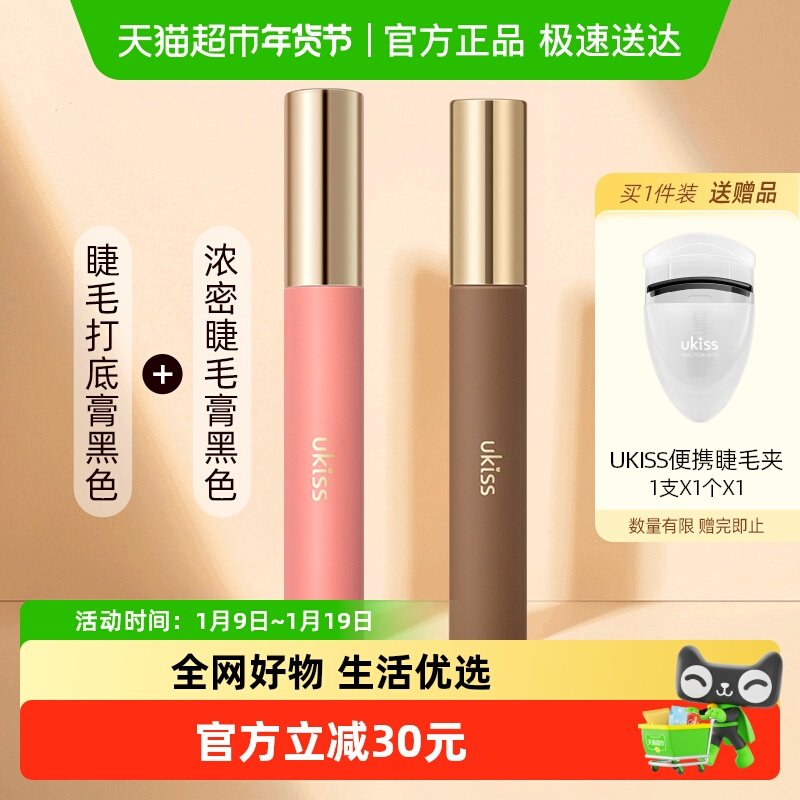 UKISS【睫毛打底膏自然黑+浓密睫毛膏自然黑】卷翘持久定型不晕染