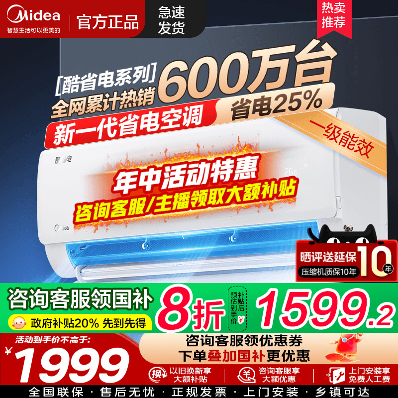 美的空调新一级变频家用大1.5匹1匹挂机酷省电酷金官方旗舰店