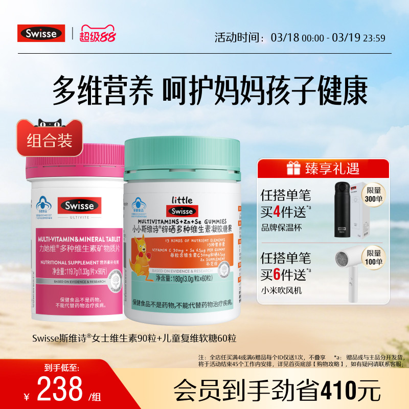 Swisse斯维诗蓝帽儿童复合维生素补锌男女士维生素e维b免疫力官方