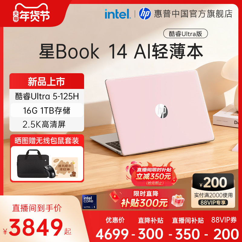 【限时补贴300元】HP/惠普可选星Book Pro14英特尔酷睿ultra5新
