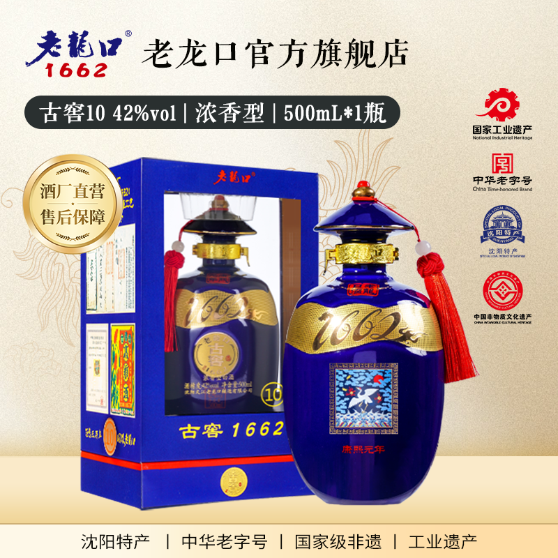 古窖10 老龙口1662系列蓝窖42度浓香型白酒500ml礼盒装送礼送长辈