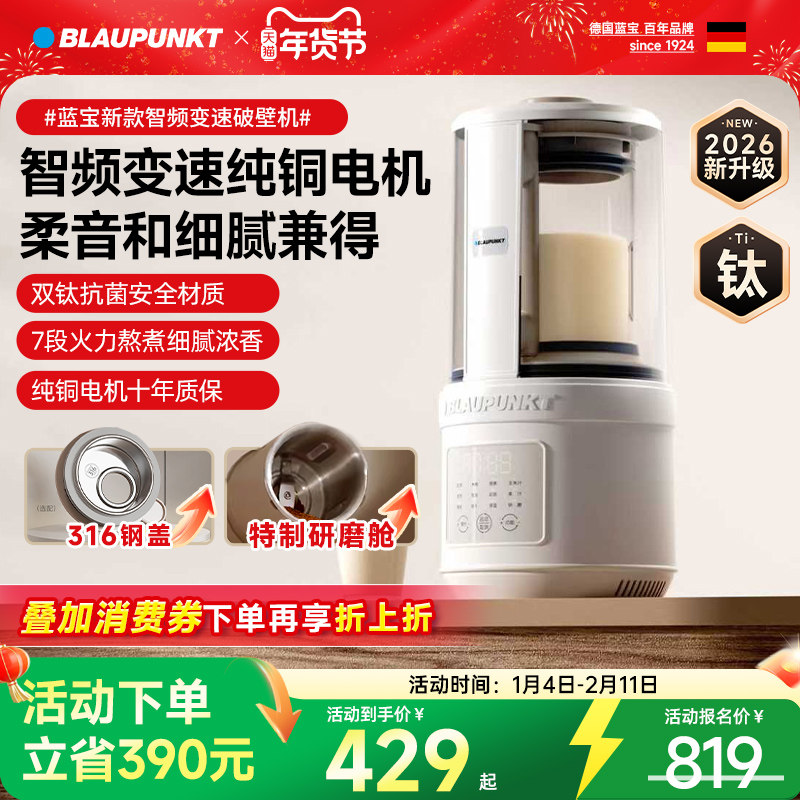 德国蓝宝柔音破壁机家用全自动豆浆机静低噪音无渣辅食料理机新款