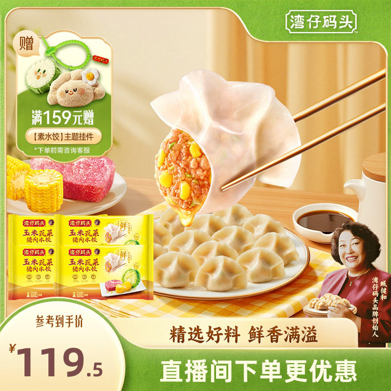 湾仔码头水饺玉米三鲜白菜猪肉720g*4袋煎饺早餐速冻饺子