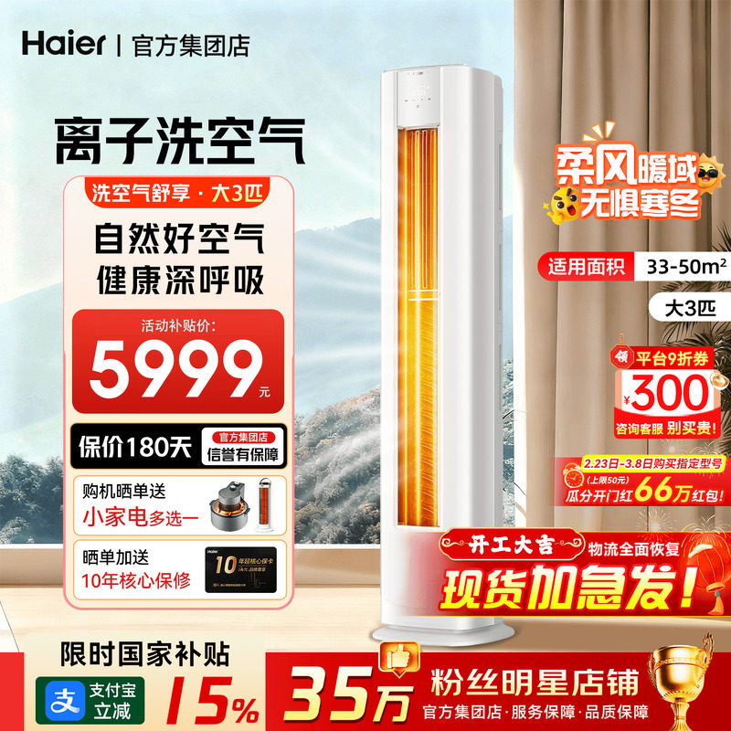 【麦浪】海尔洗空气空调家用2匹3匹一级能效变频客厅立式柜机72E3