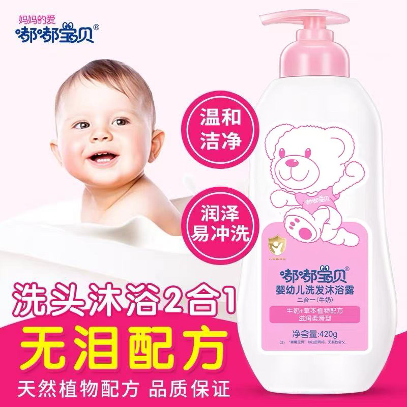 嘟嘟宝贝婴儿儿童新生儿洗发沐浴露二合一正品无泪植物牛奶420ML
