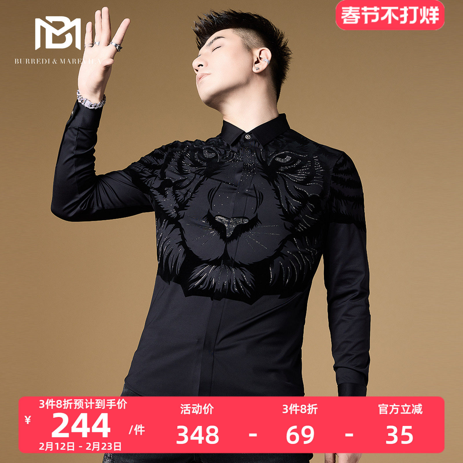 BM欧洲站潮牌男装印花虎头烫钻衬衫男高级感轻奢休闲男士衬衣秋季