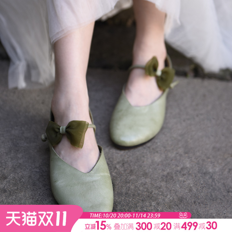 Artmu阿木原创蝴蝶结单鞋浅口真皮平底豆豆鞋仙女玛丽珍鞋新款