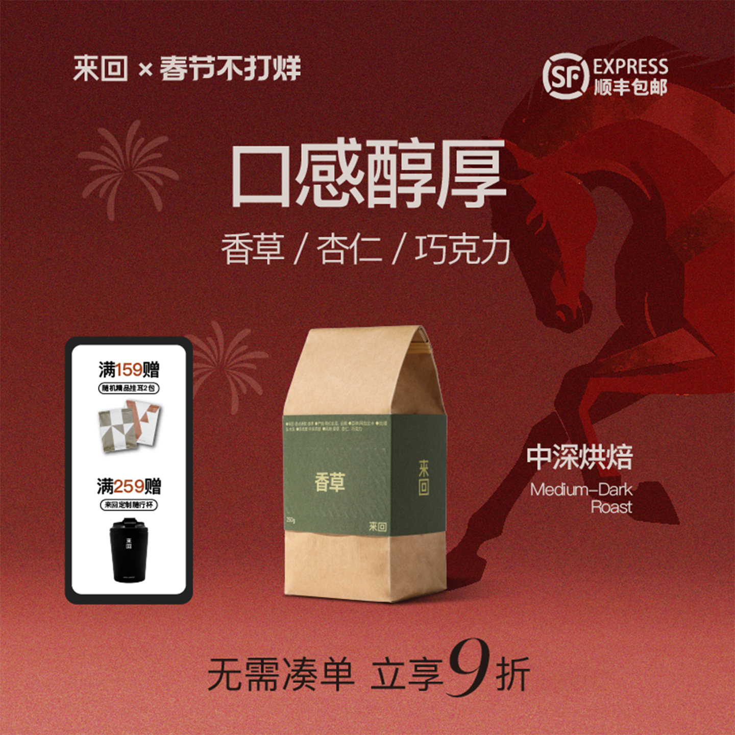 来回咖啡十年经典香草风味精品意式拼配咖啡豆中深烘焙商用咖啡粉